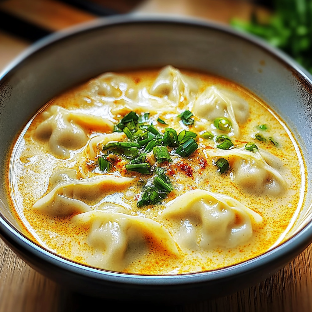 Thai Coconut Curry Dumpling Soup is a flavorful dish that combines tender dumplings with a rich, aromatic coconut milk broth. This soup features traditional Thai spices, fresh vegetables, and herbs like cilantro and lime. The dumplings can be filled with various ingredients, making this recipe versatile and customizable. Enjoying this comforting soup is perfect for a cozy night in or a gathering with friends.