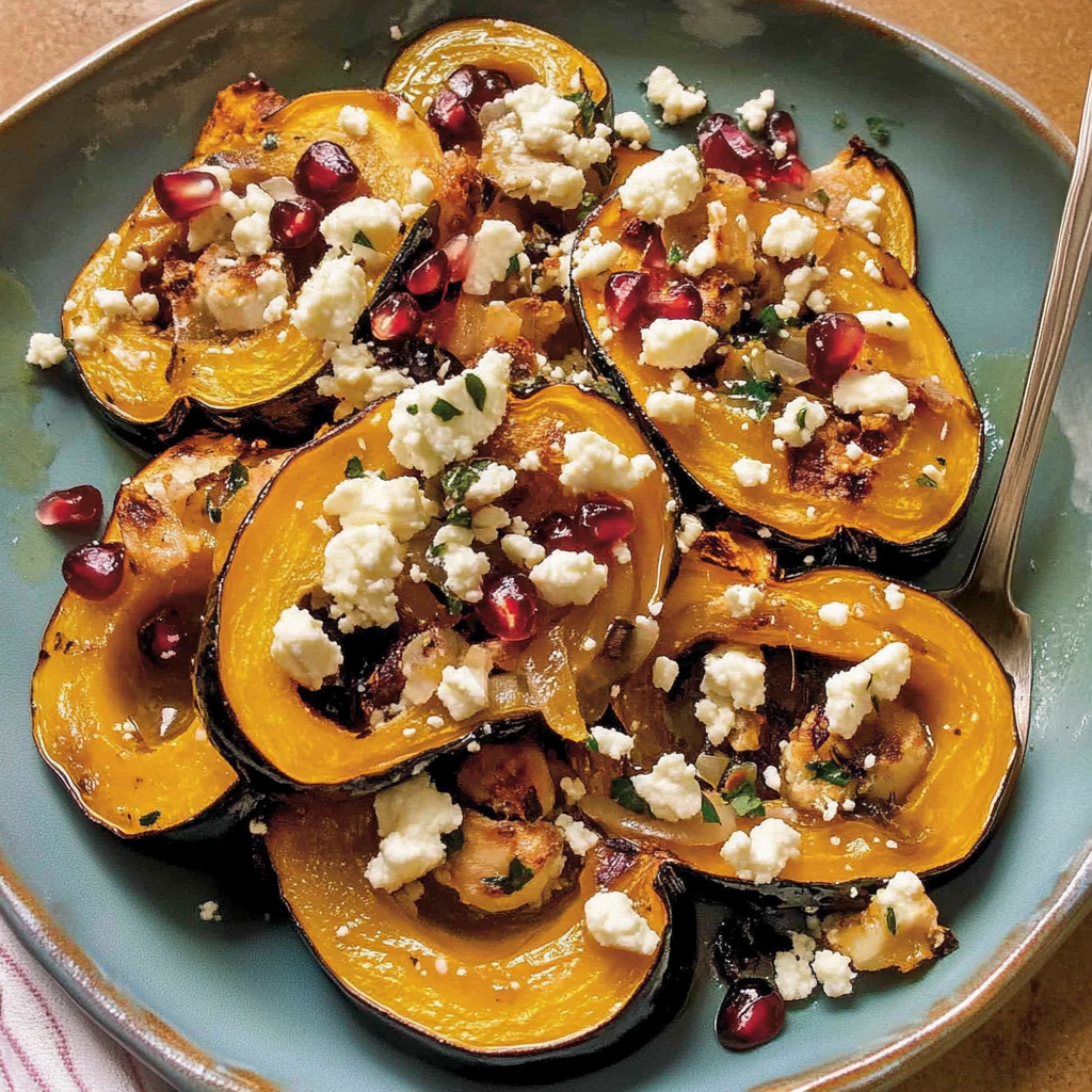 - This incredible Roasted Acorn Squash Half-Shells with Feta & Pomegranate transforms simple everyday ingredients into restaurant-quality flavors that will blow your mind completely