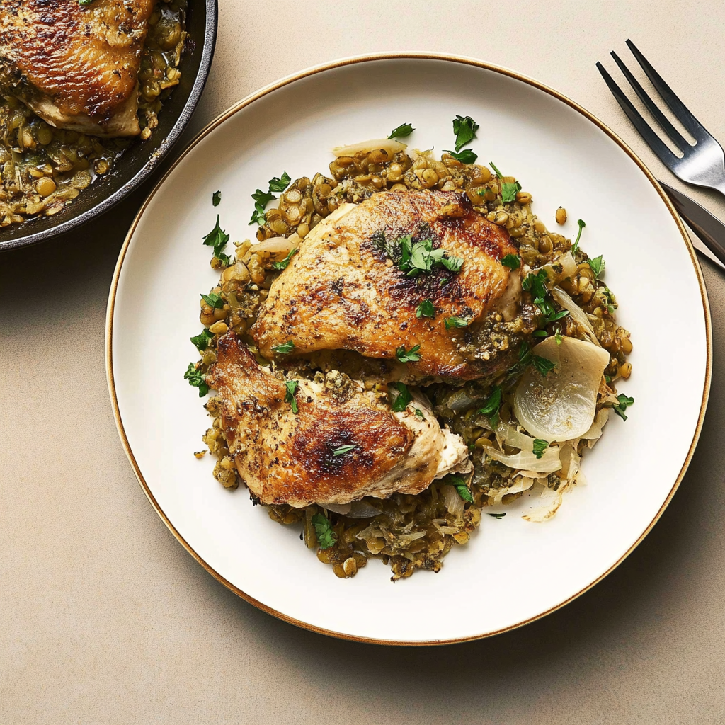 Start by marinating the chicken in za’atar while preparing the lentils. Sear the chicken skin-side down first for ultimate crispiness. Cook lentils until tender, then toss in fresh herbs and spices just before serving.
