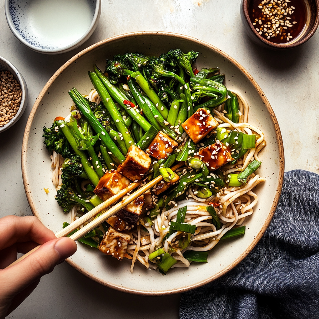 Yes! You can prepare individual components ahead of time—cooked noodles, crispy tofu, and chopped veggies can be stored separately in the fridge. Assemble just before serving to ensure everything stays fresh and crispy.