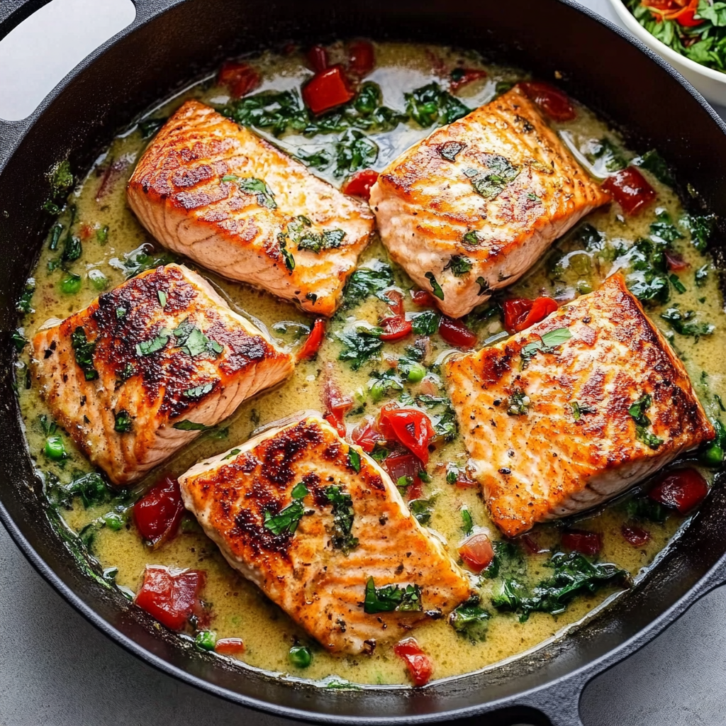 Add Garlic and Tomatoes: Toss in minced garlic and chopped sun-dried tomatoes after flipping the salmon. Sauté until fragrant—about 1 minute—releasing those beautiful aromas.
