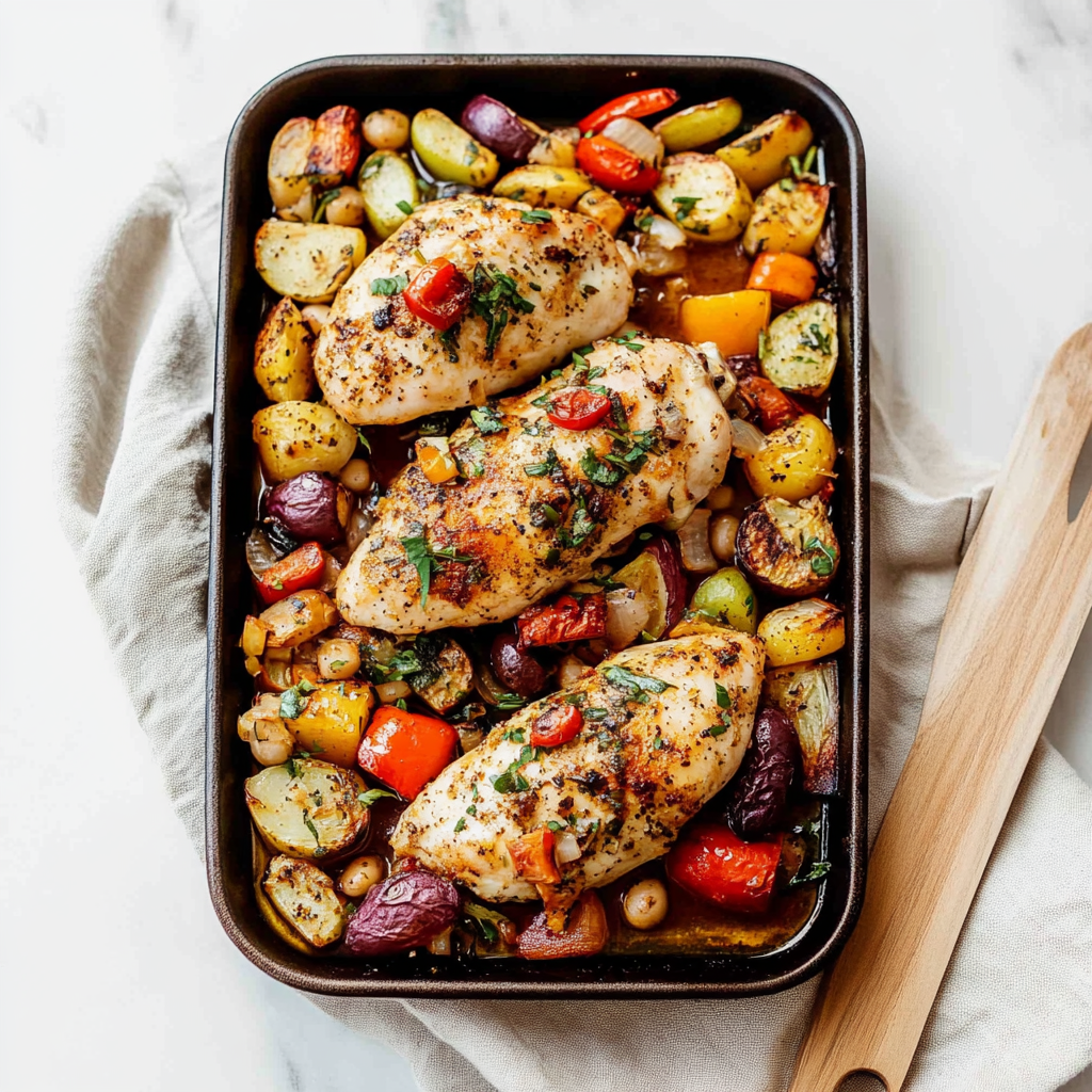 Bake to Perfection: Place everything in the preheated oven and bake for about 25-30 minutes or until the chicken reaches an internal temperature of 165°F (75°C). Enjoy watching those beautiful colors transform!