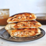 Add Filling to Each Circle: Spoon generous portions of shredded chicken mixture onto one half of each dough circle. Sprinkle shredded mozzarella cheese generously on top because more cheese equals more happiness.