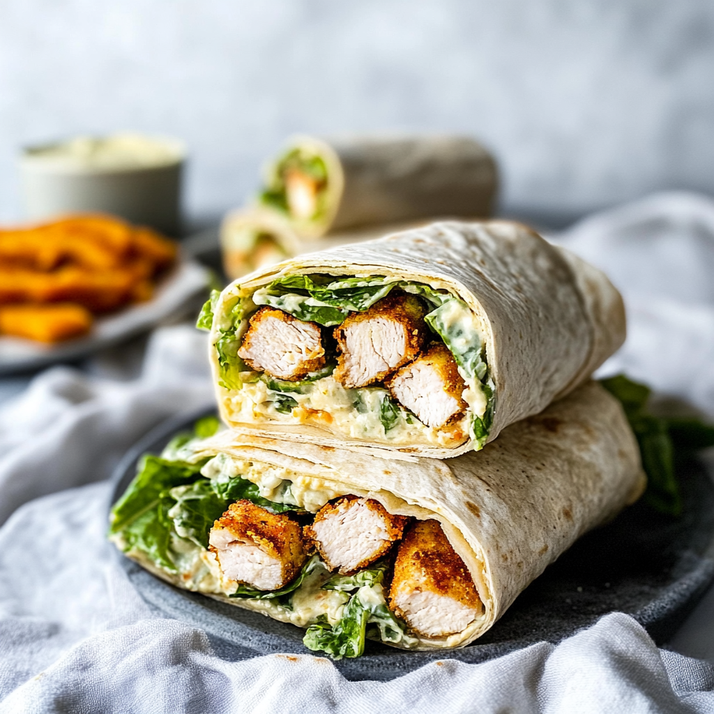 Feel free to customize your Chicken Caesar Wraps! Swap grilled chicken for shrimp or tofu for a vegetarian twist. Add crispy bacon bits or extra Parmesan cheese for a decadent touch, making each wrap uniquely yours.