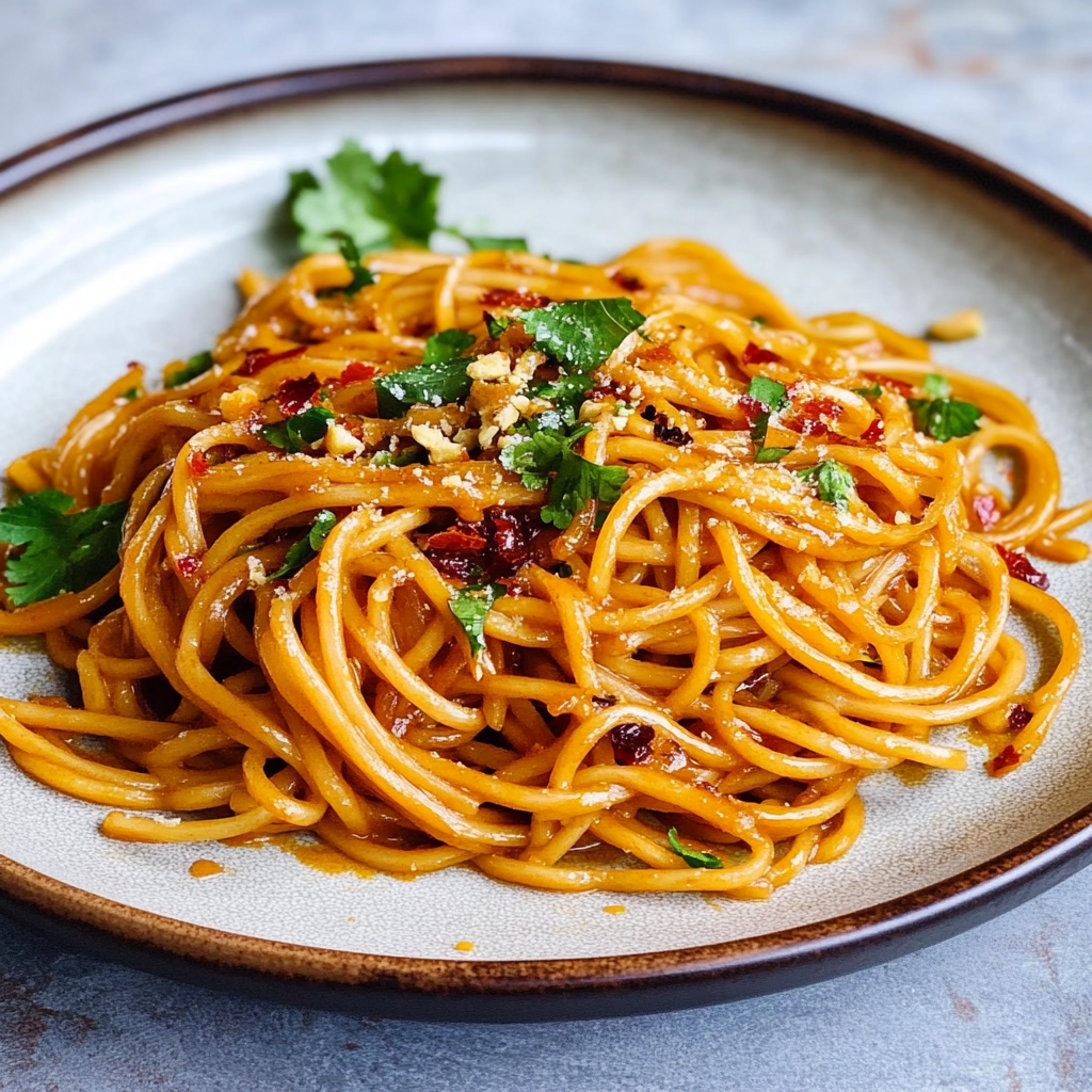 Plate and Garnish: Serve immediately on warm plates topped with toasted sesame seeds and extra chili crisp if desired; dig in while it’s hot for maximum flavor!