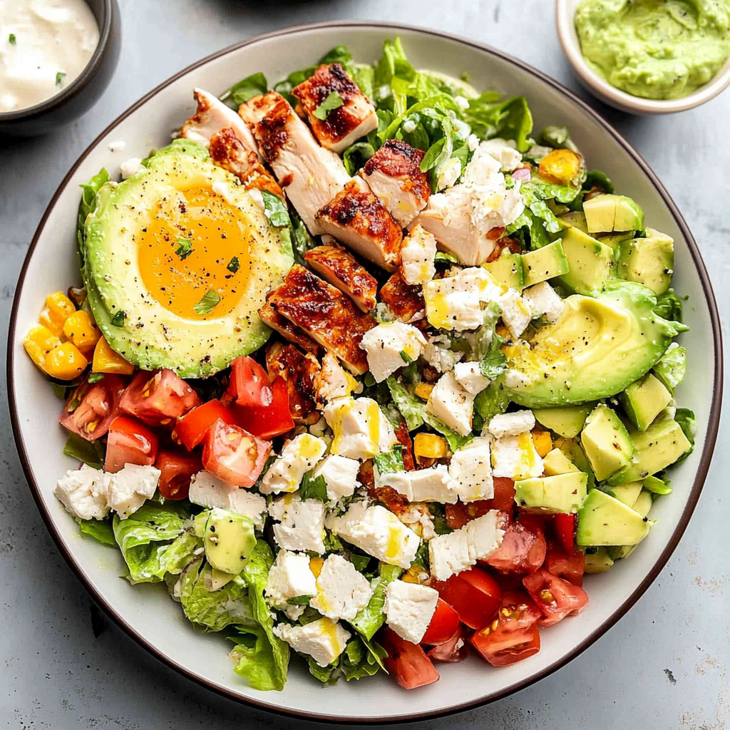 Cobb Salad is a colorful medley of fresh ingredients that combines crispy bacon, tender chicken, creamy avocado, and tangy blue cheese for an unforgettable experience. Perfect for any occasion—from casual dinners to festive gatherings—this salad is not just delicious but visually stunning. Each bite offers a delightful crunch and a burst of flavor that will impress your family and friends. Embrace the joy of cooking as you prepare this classic dish that’s sure to become a favorite!