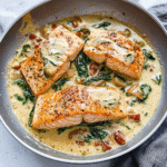 HomeComfort & Family FavoritesIrresistible Garlic Butter Tuscan Salmon with Spinach Recipe