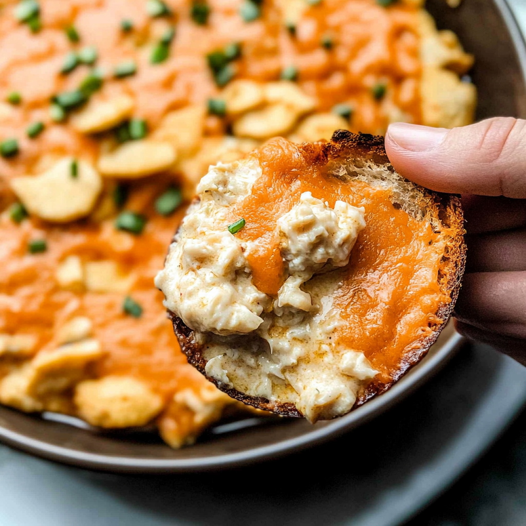 Serve your Hot Crab Dip with an assortment of dippables like toasted baguette slices, crackers, or fresh veggies. These options provide delightful contrasts in texture alongside rich flavors.