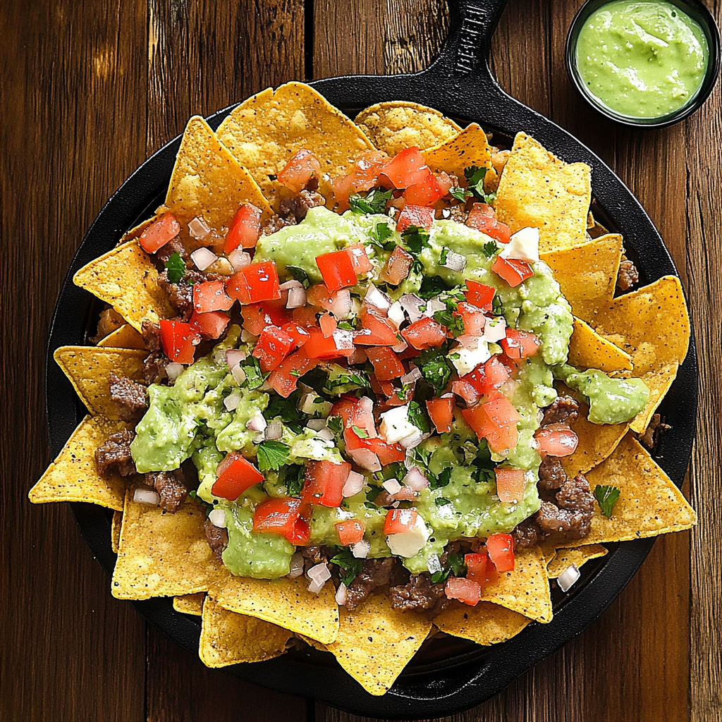 Nachos with Guacamole and Pico de Gallo are the ultimate crowd-pleaser, combining crispy tortilla chips, gooey melted cheese, and vibrant toppings for a flavor explosion. Perfect for game days, parties, or a cozy night in, this dish transforms simple ingredients into a mouthwatering masterpiece. Whether you’re sharing with friends or indulging solo, these nachos deliver a delightful crunch and creamy goodness that will leave everyone coming back for more.