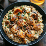 One-Pot Mushroom Chicken and Rice is a delightful, comforting dish that combines tender chicken, earthy mushrooms, and fluffy rice into a savory masterpiece. Perfect for busy weeknights or special gatherings, this easy-to-make recipe transforms simple ingredients into a restaurant-quality meal. With its rich flavors and vibrant presentation, it’s sure to impress family and friends alike.