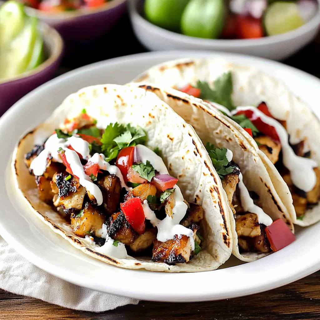 Feel free to customize these tacos! Swap out chicken for tofu or shrimp, add spicy jalapeños for a kick, or mix in fresh herbs like cilantro for added brightness. Your creativity knows no bounds!