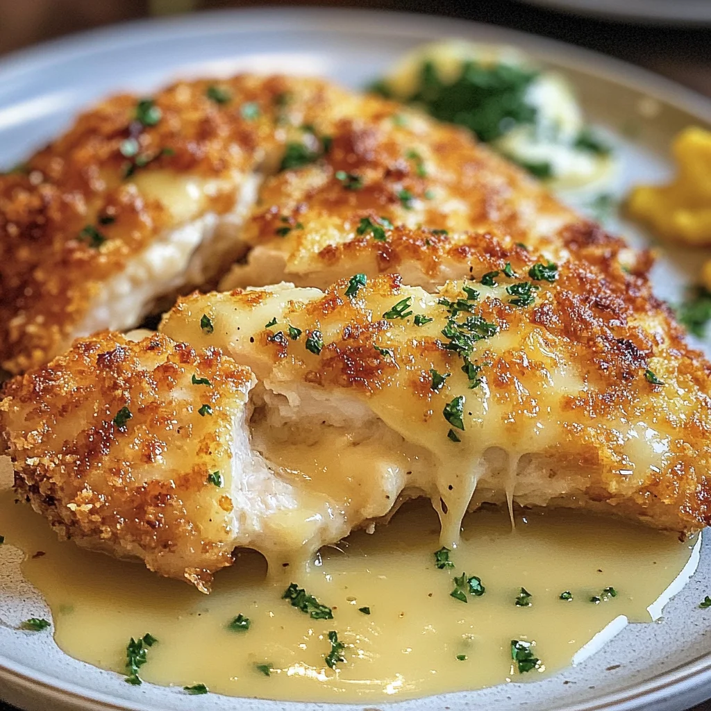 Plate those gorgeous pieces of Longhorn Steakhouse Parmesan Crusted Chicken, drizzle with that creamy sauce, and serve hot!